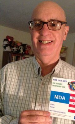 Born in Brooklyn, N.Y., Lewis became a baseball fan when he was eight-years-old. There were signs he was going to become a sportswriter. He had the audacity to ask the New York Jets for access to the team’s locker room at Shea Stadium in December 1968 to interview Gerry Philbin and Johnny Sample for his high school newspaper, only weeks prior to the team’s historic Super Bowl victory. The next summer, he went to Jets training camp and interviewed Joe Namath.